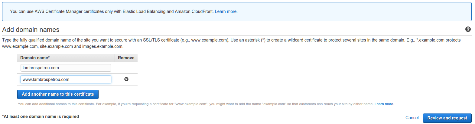 lambrospetrou.com.The next step is to setup our HTTPS certificate (if you do not want HTTPS just skip this step and leave the defaults)