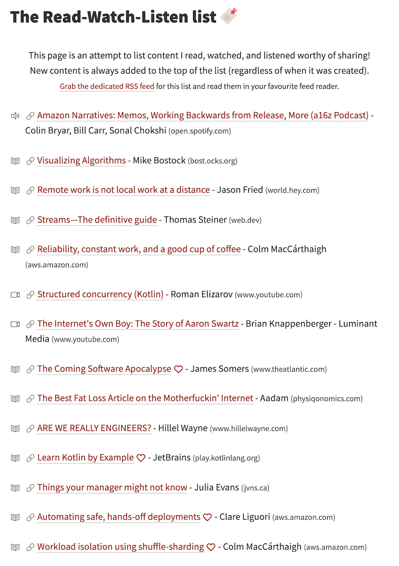 I also created a dedicated RSS feed separate from my articles RSS feed in order to provide an easy way for people to consume this list using their favourite feed reader.