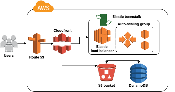 In the following diagram we can see an overview of the application’s architecture. It is is one of the simplest applications you can make in a weekend but at the same time it allows you to use many cloud services following best-practices in order to achieve fault-tolerance, high availability and durability, which is similar to what you would do in a real super-scalable service.